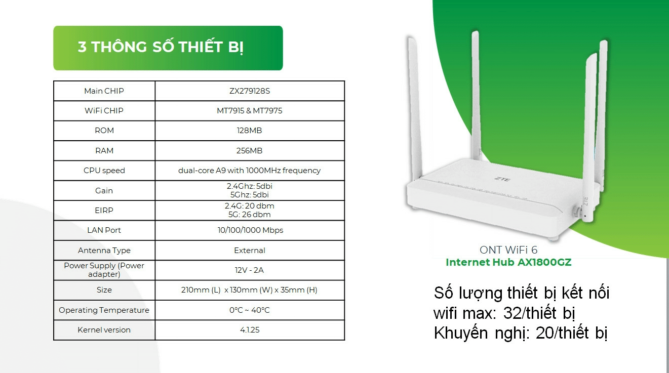 Nó cũng hỗ trợ công nghệ MU-MIMO (Multi-User Multiple Input Multiple Output) để cải thiện khả năng kết nối đồng thời với nhiều thiết bị và công nghệ Target Wake Time (TWT) giúp tiết kiệm năng lượng cho các thiết bị IoT.